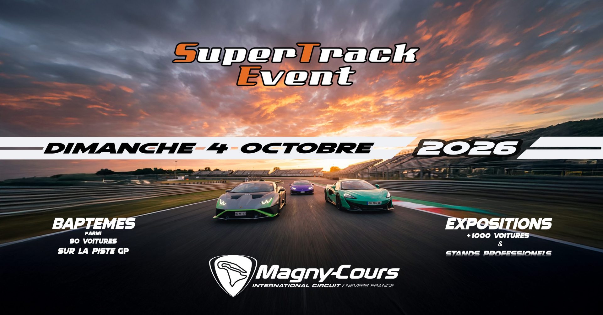 SuperTrack Event est un évènement automobile inédit, organisé le dimanche 4 octobre 2026 sur la piste Grand Prix de Nevers Magny-Cours.