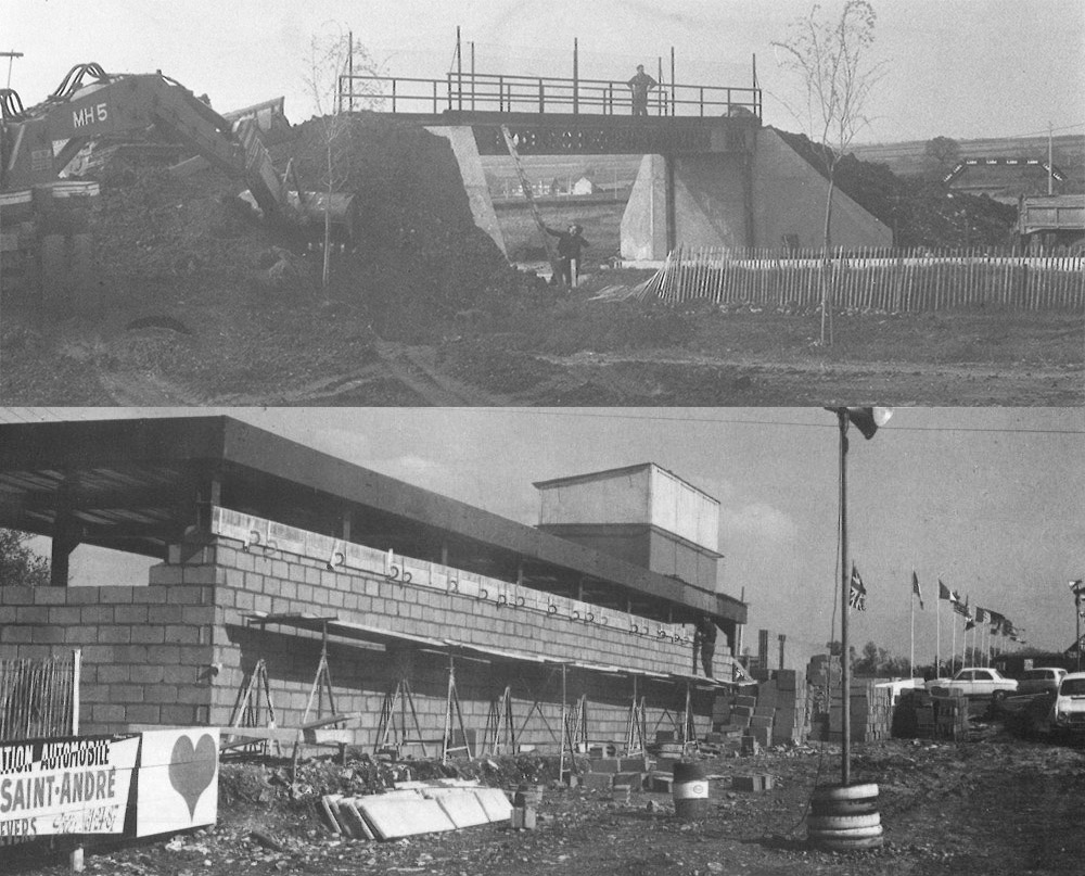 Toujours en mars, mais de l’année 1985, les travaux du circuit automobile continuent puisque l’on crée de nouveaux bureaux ainsi qu’une salle de presse au-dessus des stands.